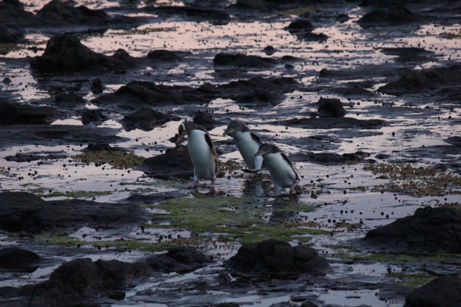 penguin family on the way to their nest … the little ones were already waiting for mommy on the shore