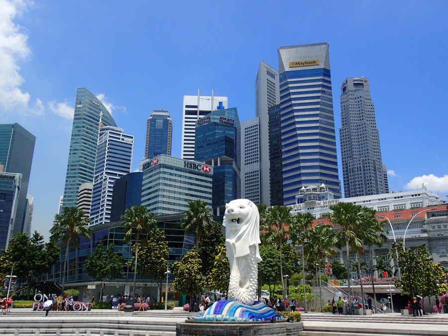 the iconic Merlion in front of the financial district