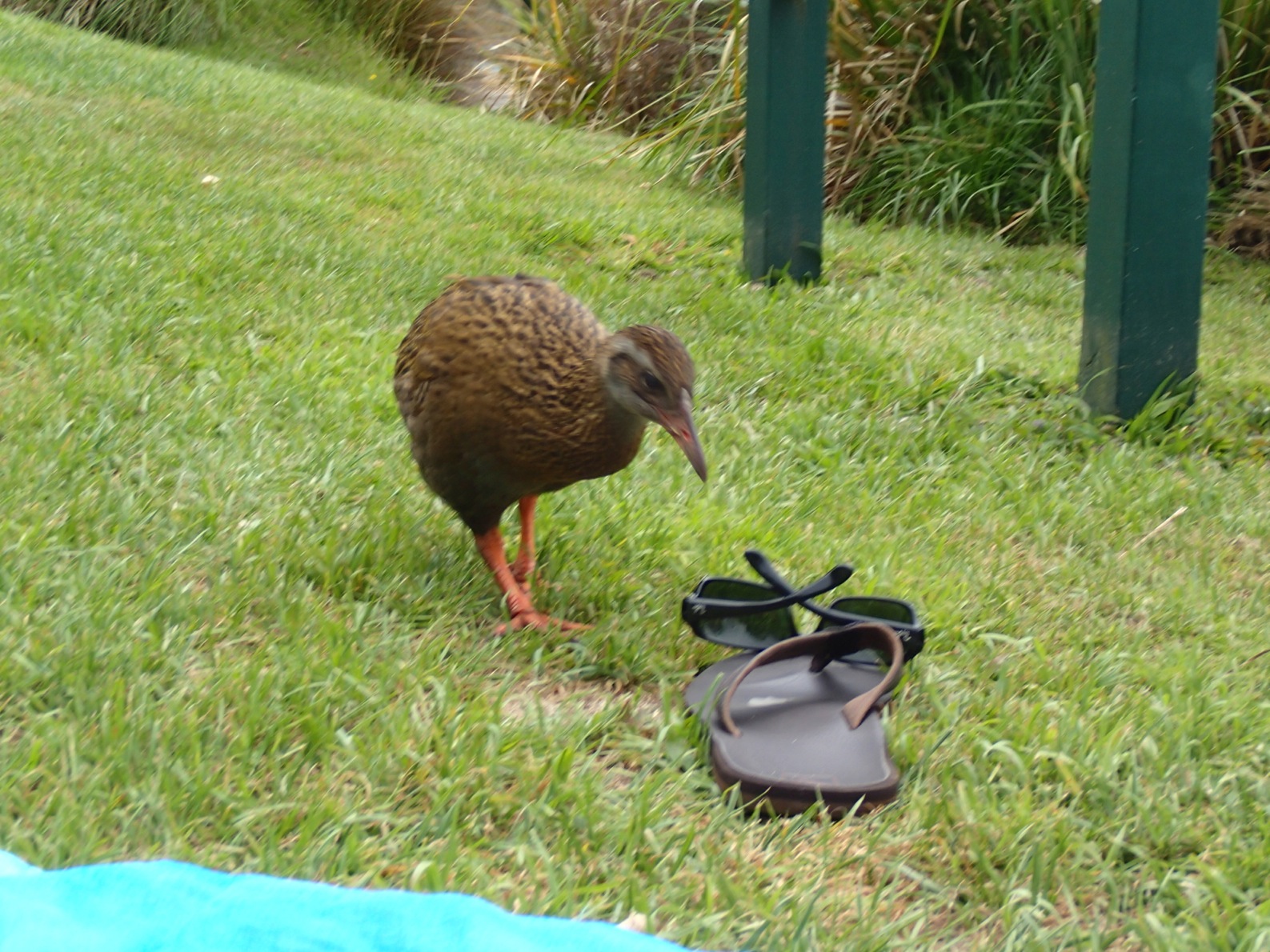 Mr. Weka inspecting my jandals: “not the right walking shoes!”