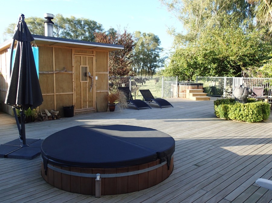 Spa area with hot tubs and wood fired sauna