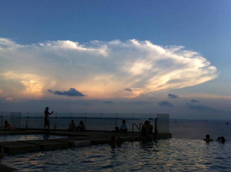 evening view from the pool across the ocean